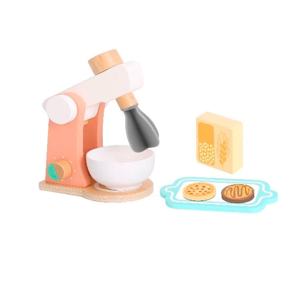 • Piezas: Mezcladora de juguete de madera con tazón desmontable y manivela giratoria