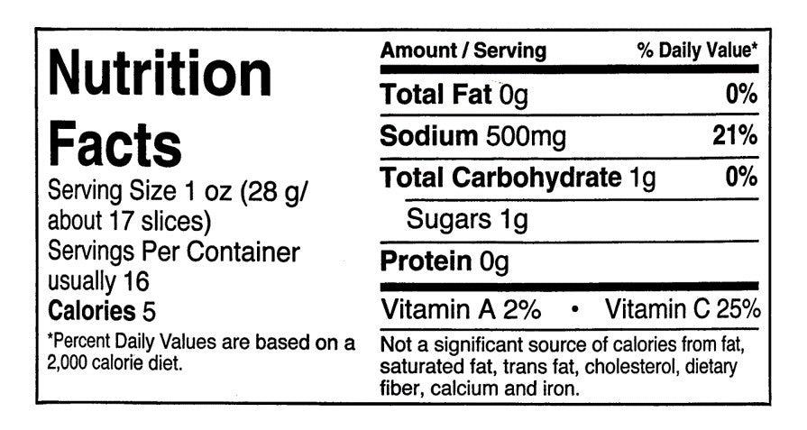 Ají jalapeño, agua, vinagre, sal, cebolla deshidratada, ajo deshidratado, cloruro de calcio, benzoato de sodio (0,1%), colorante amarillo 5.