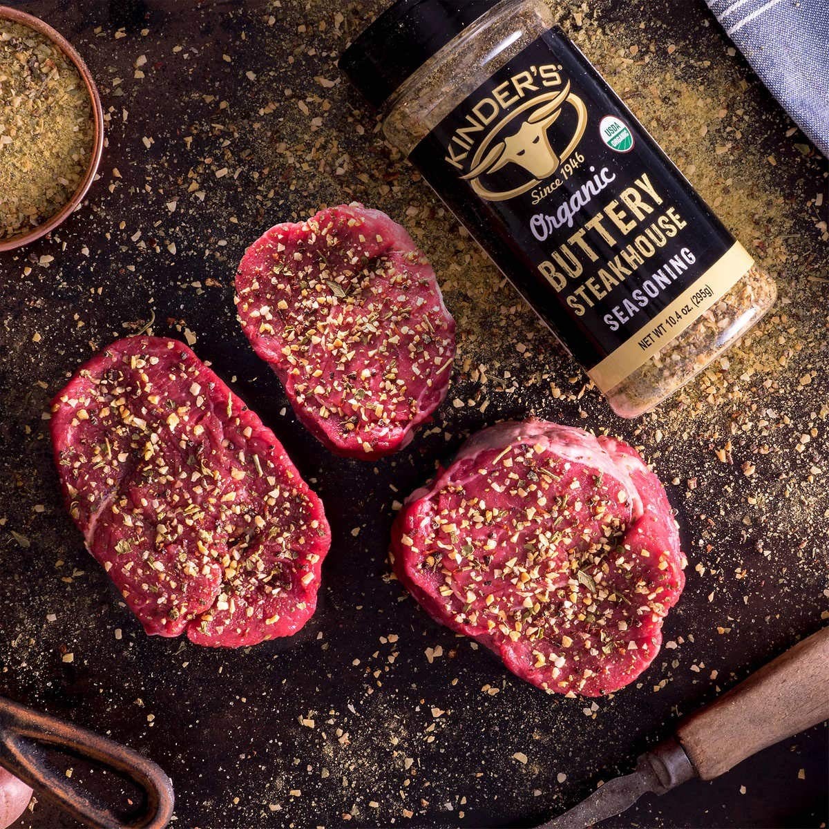 - Sazonador con mantequilla para todo tipo de carnes y verduras