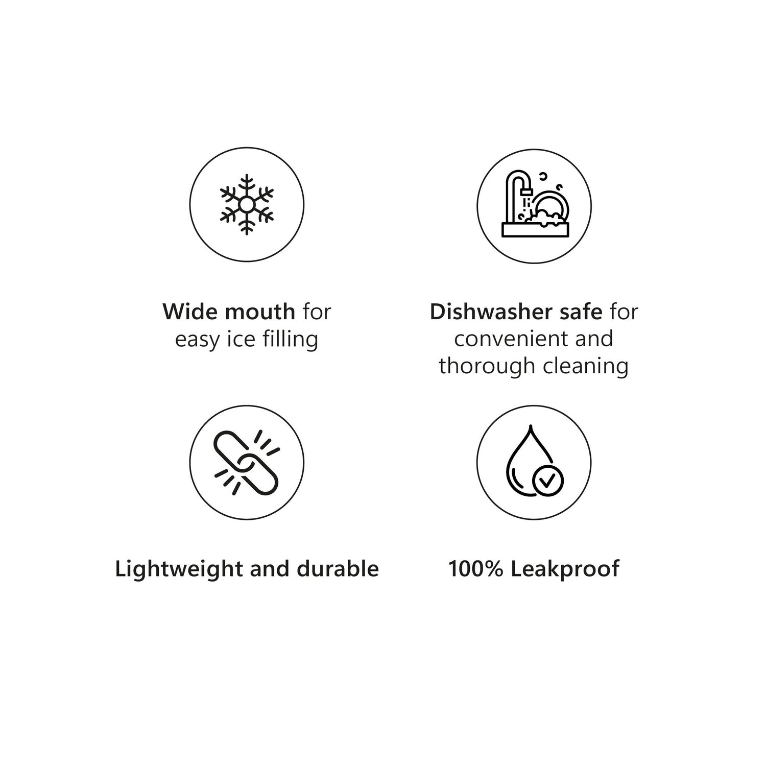 - Materiales: Plástico Tritan, resistente a impactos y libre de BPA