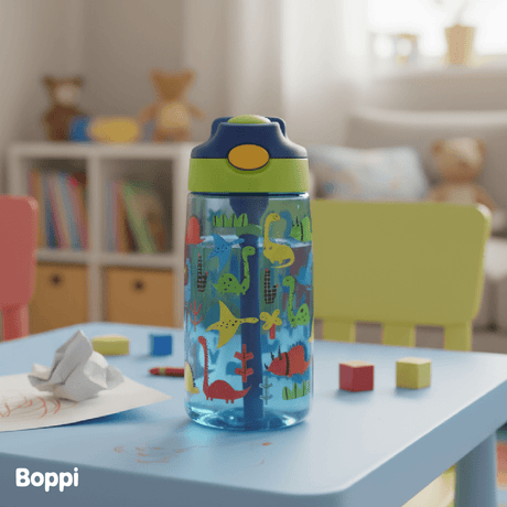 Botella Tritan Kids Antiderrame 480 ml Dinosaurios Azul Boppi 1 un