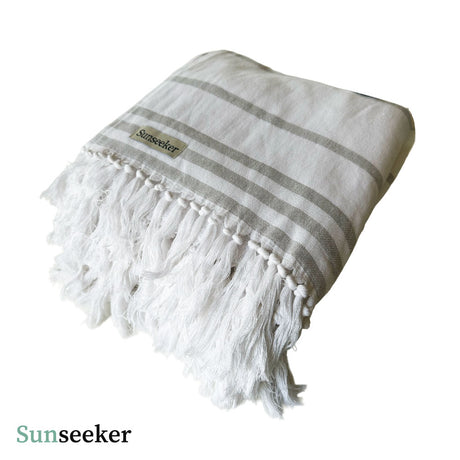 Toalla Playa Algodón con Flecos XL Rayas Blanca Sunseeker 1 un