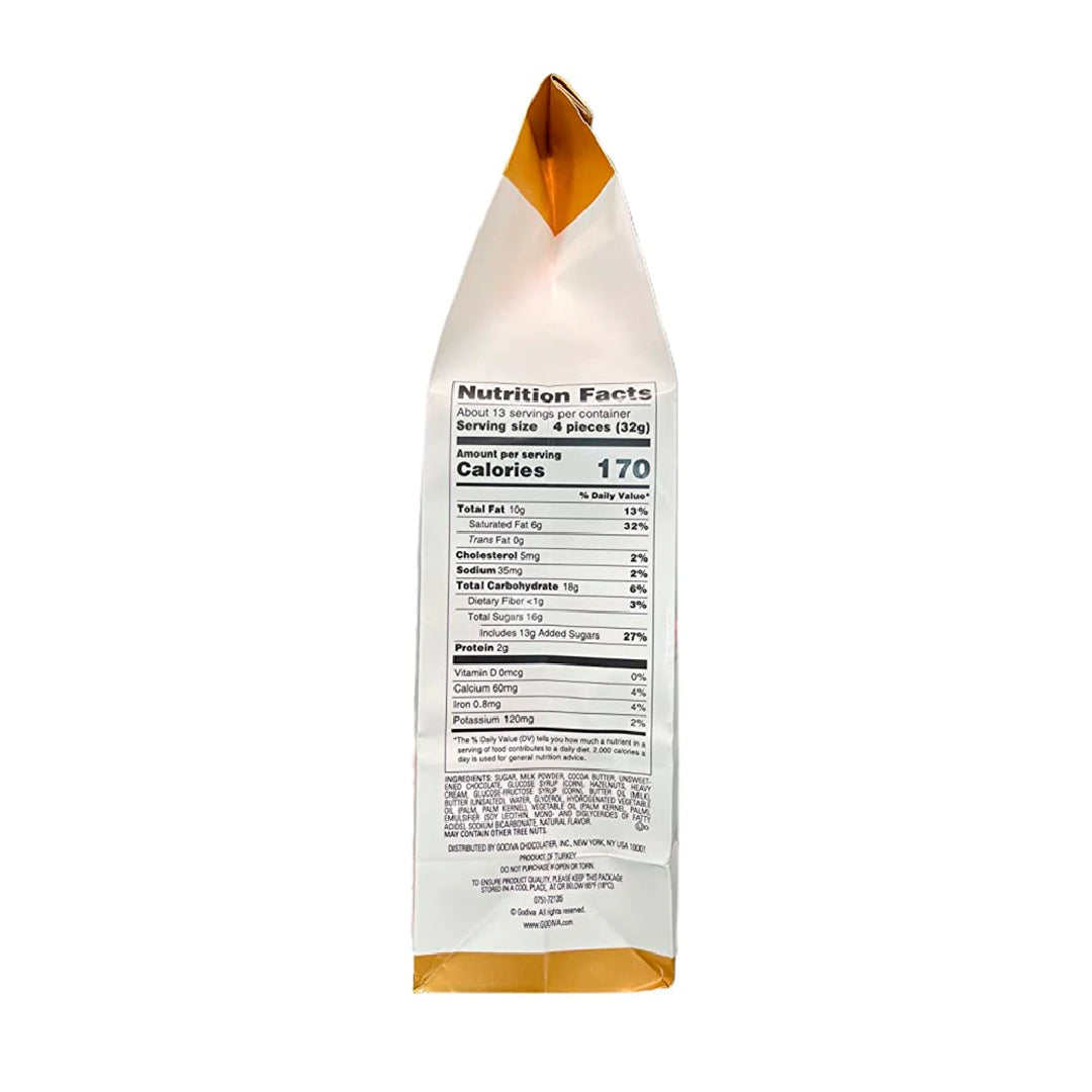 Azucar, leche en polvo, manteca de cacao, chocolate sin endulzar, jarabe de glucosa de maìz, avellanas, crema, jarabe de glucosa fructosa, mantequilla clarificada, agua, glicerol, aceite hidrogenado de palma y semilla de palma, lecitina de soya, mono y digliceridos, bicarbonato de sodio, saborizante natural.