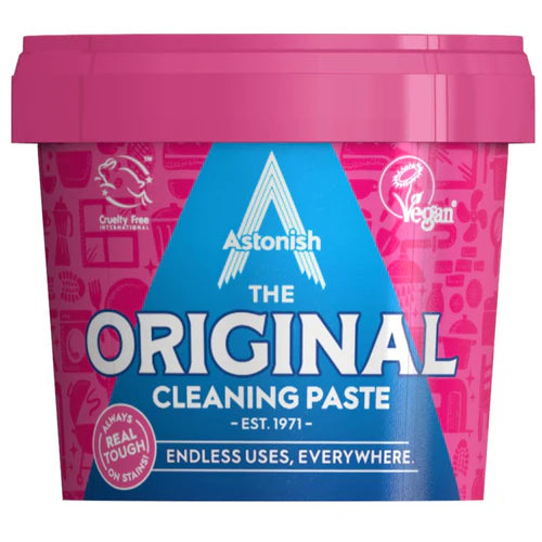 Descubre por qué la Pasta de Limpieza The Original de Astonish es un clásico de la limpieza. Este envase de 500 g contiene una potente fórmula en pasta diseñada para pulir, proteger y limpiar una amplia gama de superficies en tu hogar. Es ideal para eliminar la suciedad más difícil, las manchas de grasa y la cal, dejando un acabado brillante y reluciente.